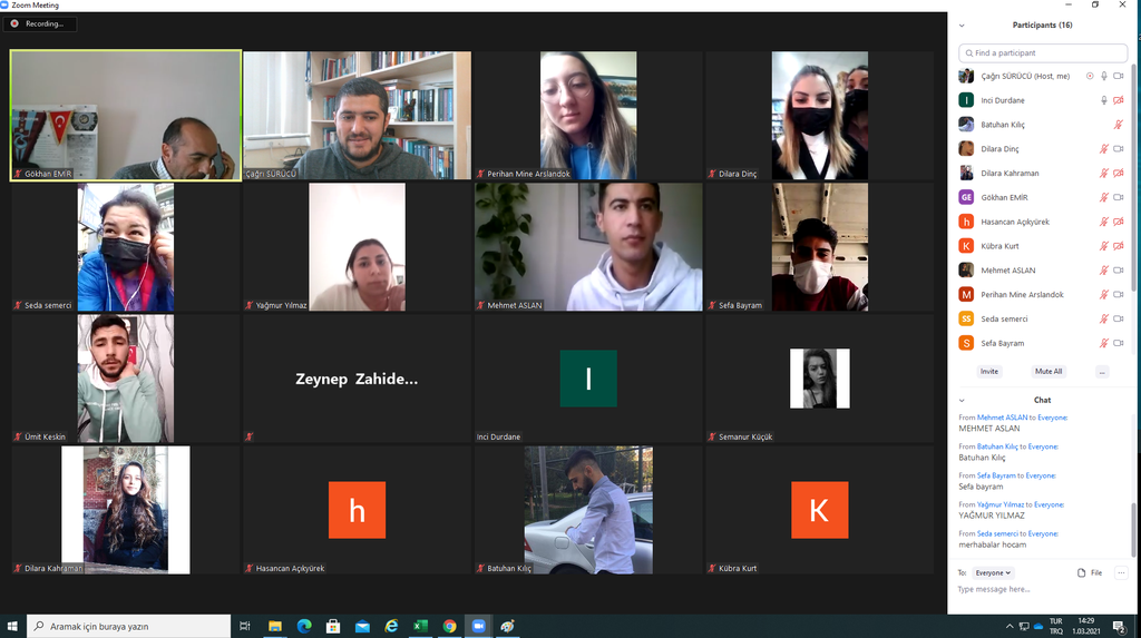 2020-2021 Bahar dönemi Akademik Danışmanlık Eylem Planı çerçevesinde 2. Sınıf Öğrencilerine danışmanları Öğr. Gör. Çağrı SÜRÜCÜ ve Öğr. Gör. Dr. Gökhan EMİR tarafından "Ders Seçimleri, Kayıt İşlemleri ve Mevzuat Bilgilendirmesi" konularında zoom platformu üzerinden çevrimiçi eğitim verilmiştir. Ayrıca 2020-2021 Bahar dönemi ile ilgili olarak öğrencilere derslerle ilgili bilgilendirme yapıldı.