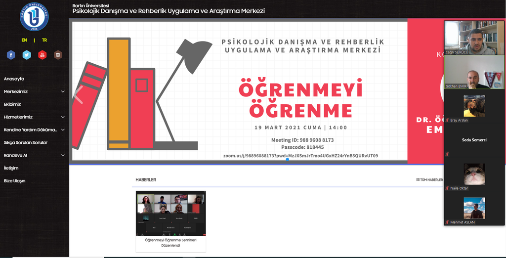Akademik Danışmanlık Eylem Planı Çerçevesinde 2. sınıf öğrencilerine 26 Mart 2021 tarihinde saat 14:00'da 15 öğrencinin katılımıyla Danışman Hocaları Öğr. Gör. Çağrı SÜRÜCÜ tarafından psikolojik danışma ve rehberlik merkezine ve engelli öğrenci birimine erişim hakkında bilgilendirme yapılmıştır.
