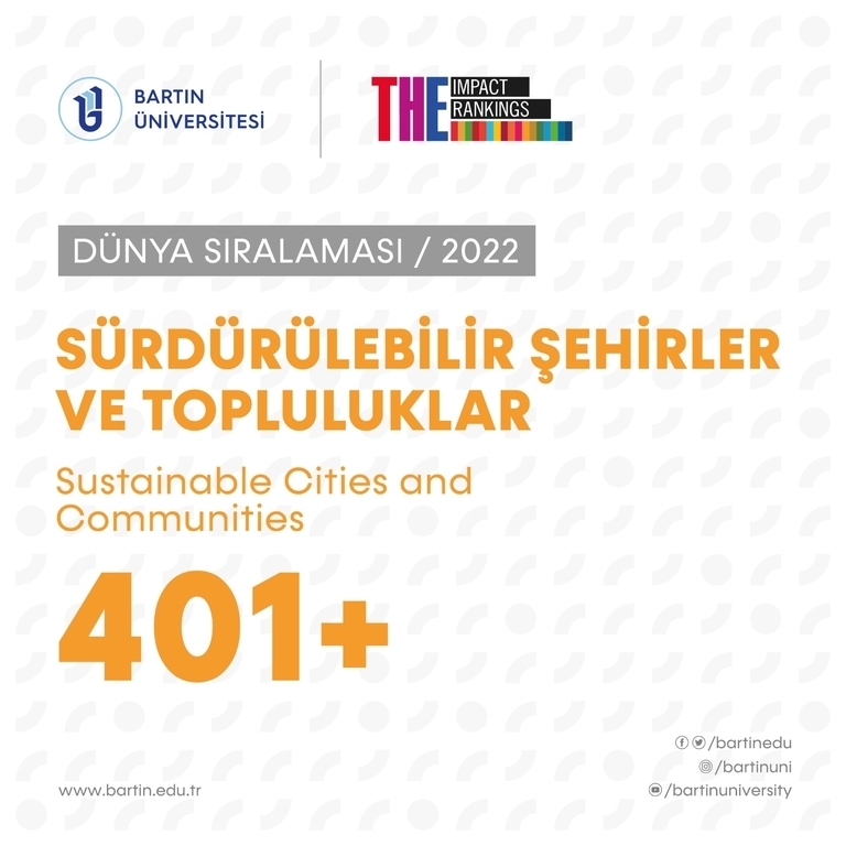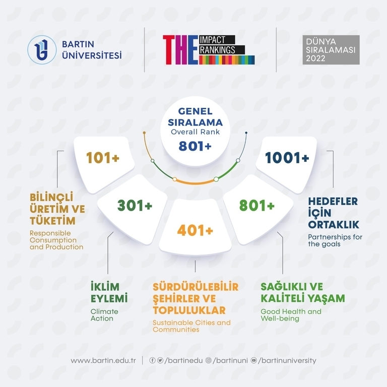 Dünya üniversiteleri sıralama kuruluşu Times Higher Education (THE), 2022 Impact Ranking (Etki Sıralaması) sıralamasını açıkladı. Birleşmiş Milletler’in (BM) Sürdürülebilir Kalkınma Hedeflerini (United Nations Sustainable Development Goals) temel alan sıralamaya göre Üniversitemiz, sosyal, ekonomik, kültürel ve ekolojik alanlarda topluma katkılarıyla en etkili yükseköğretim kurumları arasında yer aldı. Böylece Üniversitemiz, tecrübeli akademik insan kaynağı ile nitelikli eğitim-öğretim ve araştırma alanlarıyla ivmelenen başarısını bir kez daha ortaya koydu.